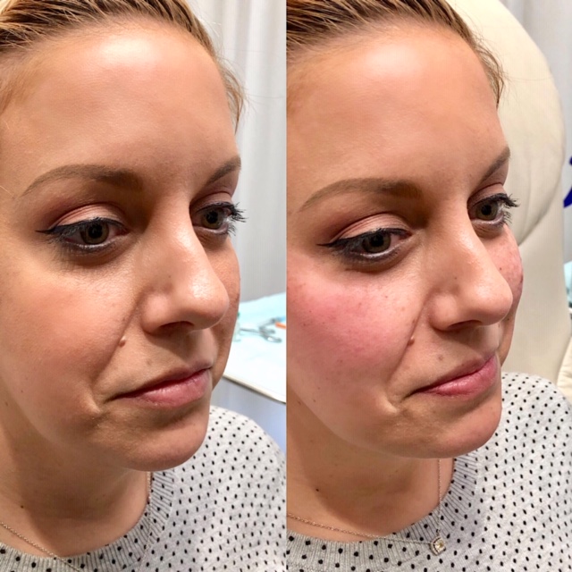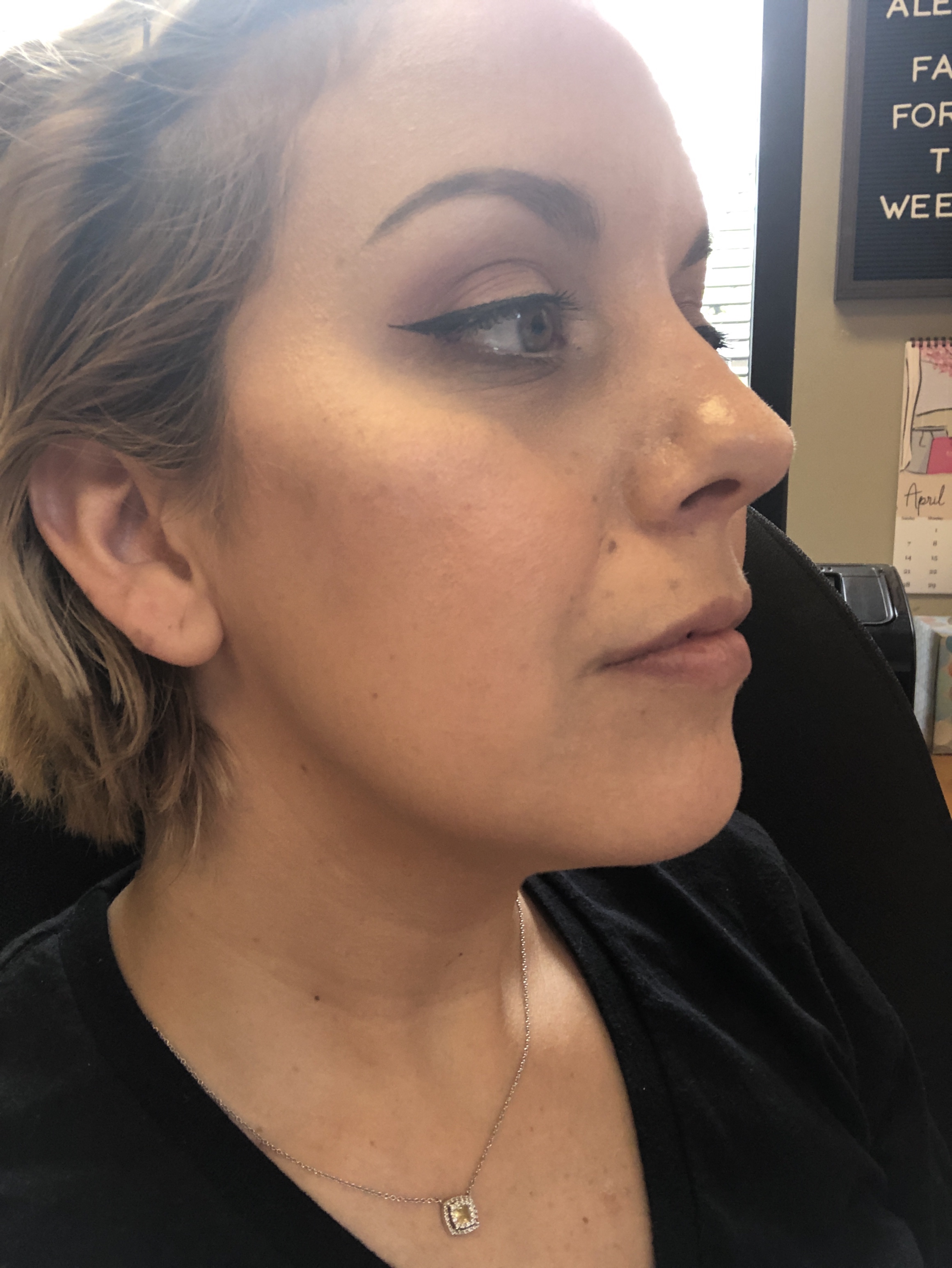 Then came injection day! Tracy put some numbing cream on my cheeks to help with any discomfort. I will admit I have a pretty ok pain tolerance, but if I was going to score how bad it hurt I would say about a 2.5 out of 10. It doesn’t feel good, but it isn’t bad at all. The best part is I could see results immediately. Honestly if I never told anyone I had it done, you guys would never notice. But I notice. I have cheek “bones” now! I can’t even tell you how happy I am with the results. So natural and only one small spot had a little bruise (totally expected) that I covered up easily with makeup. I am so glad I found Tracy! If you are in the area and are interested in fillers, set up an appointment with her. She is the best!