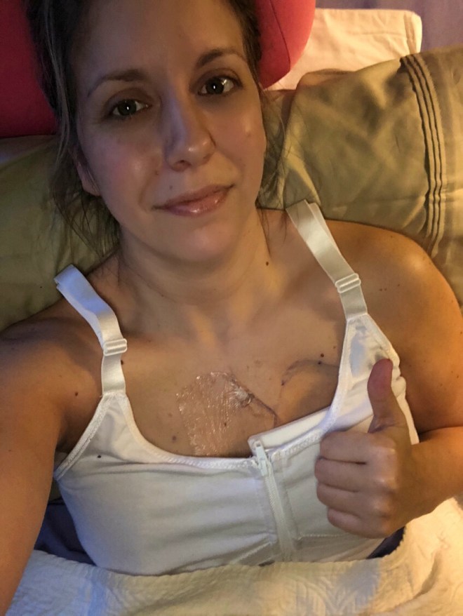 Next thing I remember is waking up in post op. They were monitoring my breathing and vitals. Dr Unger was able to go above the muscles so pain wasn’t bad.