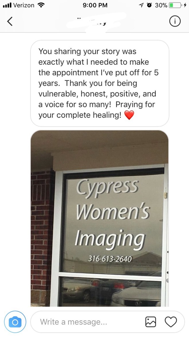I was overwhelmed by the ladies that told me that they would schedule a mammogram this week.