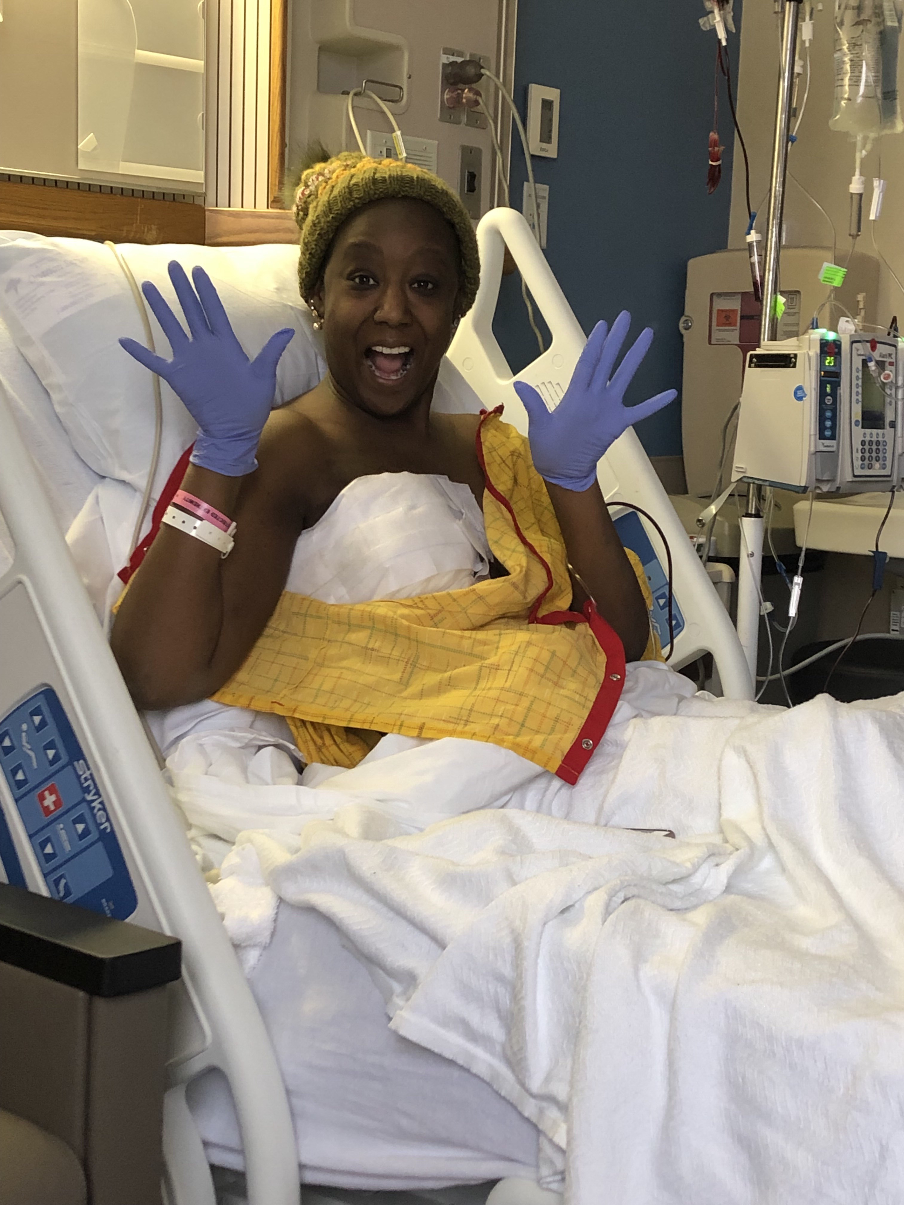 Wow, was this an experience. They marked where they were removing the masses and the reconstruction on both breast. During the surgery, my doctor said that she could tell that 4 of the lymph nodes had cancer. She biopsied 4 more and they came back positive. She removed all of the nodes and all but one had cancer. At my doctors visit, my initial Staging was Stage 2A. After my surgery I was Stage 3. After recovering from my surgeries ( I had to go back 4 days later for emergency surgery. My left breast got a hematoma and was bleeding and swelling), I met with my Oncologist. We went over my treatments. I would be getting 8 rounds of chemo total. I would be getting them every 2 weeks, then I would meet with the Radiologist and discuss the next treatment. My Oncologist wanted to do a Pet Scan first to make sure that the cancer hadn’t spread further. The scan showed that the lymph nodes by my lung and trachea was possibly cancer. Immediately, the next day, I was having them biopsied. When I woke up from the procedure, the doctor immediately told me that it was cancer, but it will be sent to the pathologist to confirm. At this point, I think hearing that news was the hardest for me. I felt like every time I turned around, bang more cancer. This was my breaking point. I was not going to survive this. I went from starting with Stage 2 to Stage 4.