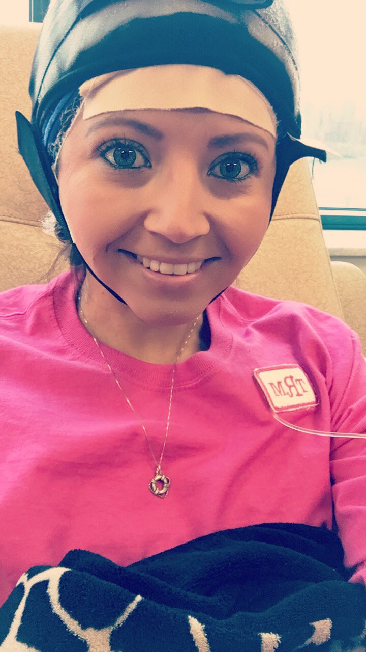 The thought of chemo shook me to the core. I did not want to LOOK sick; I know that sounds vain, but I truly didn’t want pity from others! I did not want the world to know I was sick. What did I do? Google how to save my hair, found out about cold caps and Daniel was on board with helping me do this if I truly wanted to. I talked to my MO about it at my next appointment and was told to “embrace being bald,” he said that cold caps are painful, expensive, and not guaranteed. His office gave me lots of info on wigs, but was not supportive of cold capping! I am stubborn; I talked to many different companies and decided to try it anyways and got my caps through Arctic Cold Caps. At my first treatment everyone laughed when I rolled in my Coleman cooler full of dry ice and caps. Everyone was so interested in the process! Cold capping was hard. My first treatment I had them on 10-11 hours (you start 45 min before, during, and 4 hours after). It was a lot of work for Daniel, he had to change the caps every 20 minutes and make sure the caps were maintaining the correct temperature. He never complained! I am sure I complained more than him about the discomfort! Overall, I would say I lost 25-30% of my hair, it thinned overall, but I didn’t have visible bald spots. Many people say that I never looked sick, but I look back at pictures and they are just being nice! LoL.