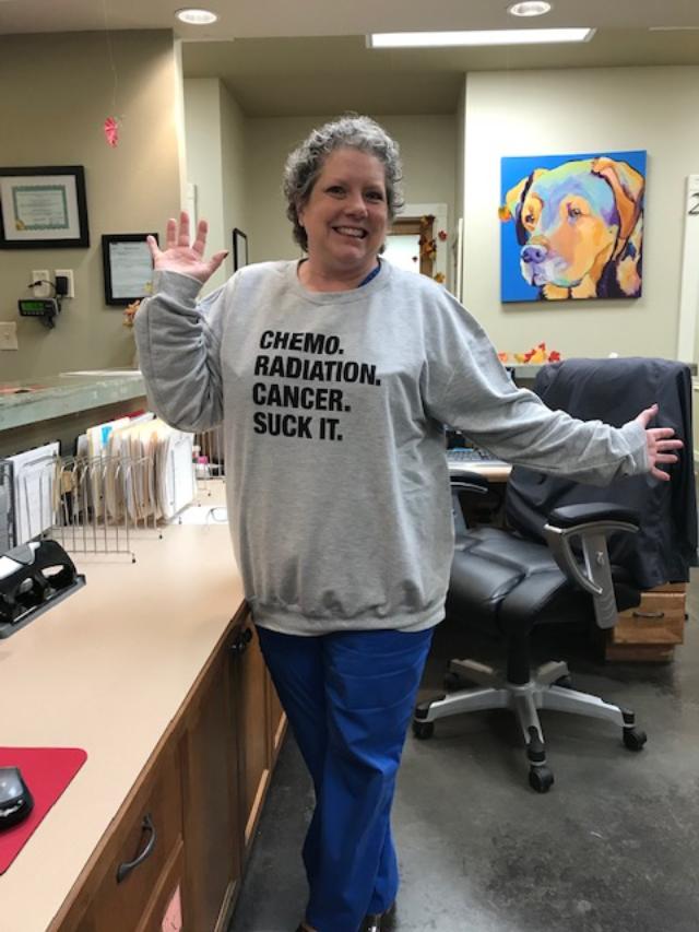 I finally decided to face my fears, after about four years of ignoring the growth, and go to the doctor. I didn’t tell my husband I was going until the day before my appointment. A mammogram confirmed an abnormal mass. A core biopsy confirmed it was cancer. It was a huge starburst-shaped mass, about five centimeters. I’ll never forget the look on the face of the technician who did the ultrasound before my biopsy. She was about my age, and she could tell that it was cancer. She told me later that during that ultrasound she had wanted to cry with my husband and me. In fact, after we left, she did cry. I was officially diagnosed with Triple Negative breast cancer on October 31, 2017. Happy Halloween!